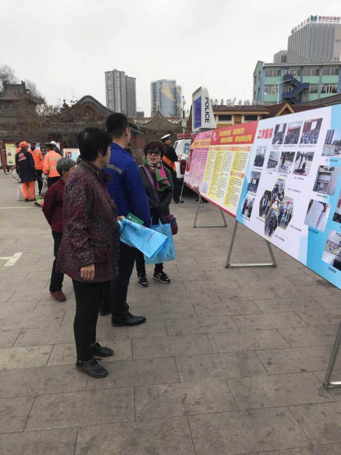 2018年3月30日上午,金橋分公司在五塔寺廣場(chǎng)參加以“深入貫徹學(xué)習(xí)習(xí)近平新時(shí)代中國(guó)特色社會(huì)主義思想,推動(dòng)平安首府建設(shè),筑牢祖國(guó)北疆安全穩(wěn)定屏障”為主題的宣傳活動(dòng)。在宣傳活動(dòng)中,金橋分公司將日常針對(duì)綜治工作的開(kāi)展情況,學(xué)習(xí)十九大報(bào)告內(nèi)容、習(xí)近平新時(shí)代中國(guó)特色社會(huì)主義思想情況,通過(guò)展板以圖文并茂的形式一一展現(xiàn)。