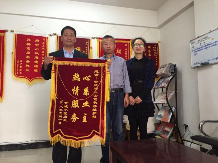 在大家的共同努力下,物業(yè)服務(wù)品質(zhì)提升百日行動(dòng)工作得到了業(yè)主的好評(píng)與支持,項(xiàng)目處先后收到業(yè)主送來的三面寫有急業(yè)主所急 幫業(yè)主所需、心系業(yè)主 熱情服務(wù)、服務(wù)第一全心為民 客戶至上暖至人心的錦旗。